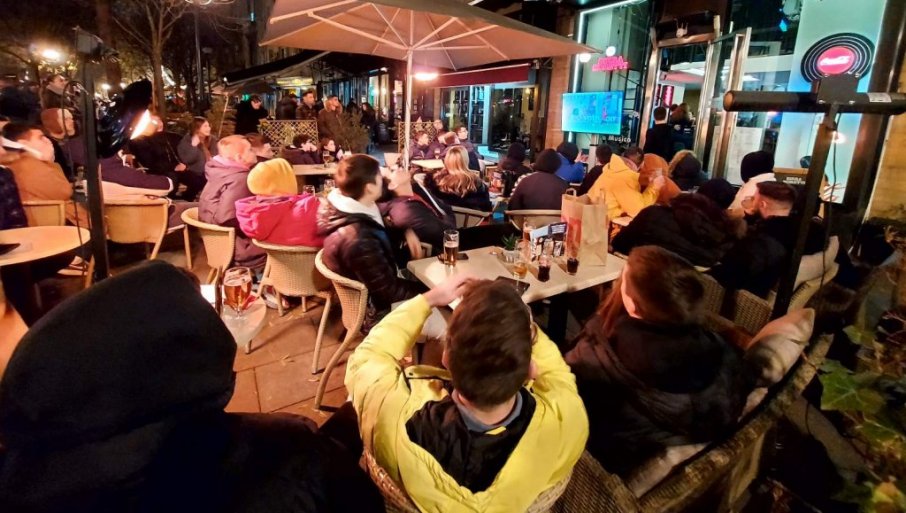 Iako je u Beogradu svega pet stepeni, to nije sprečilo navijače orlova da gledaju prenos utakmice u baštama kafića. Svi lokali na Obilićevom vencu su prepuni, a prolaznici stoje okolo i gledaju meč.