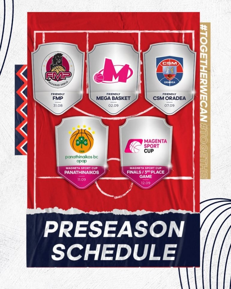 Osim treninga poznat je i veći broj pripremnih utakmica kroz koji će se tim sa Malog Kalemegdana (kome će se krajem nedelje priključiti i Nejt Volters) uigravati za početak nove sezone.