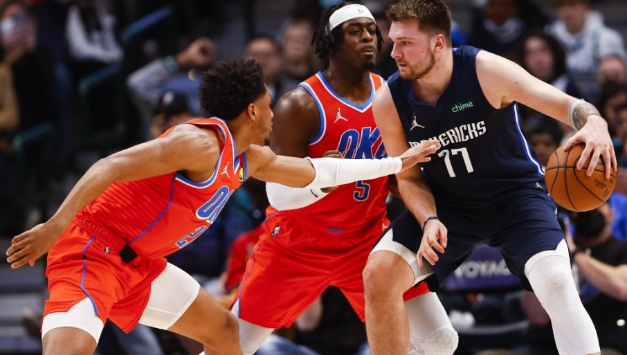 KOŠARKAŠI Dalasa pobedili su Oklahomu sa 104:102 i ostvarili drugu uzastopnu pobedu, odnosno devetu u poslednjih 10 utakmica. Dalas je predvodio Luka Dončić tripl-dabl učinkom od 20 poena, 12 asistencija i 11 skokova. To je bio njegov treći tripl-dabl u poslednjih pet utakmica, peti u sezoni, a 41. u karijeri.