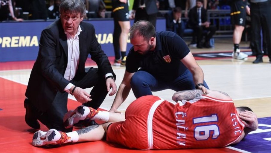 Nakon četiri minuta igre nekadašnji košarkaš Partizana je pri skoku nezgodno doskočio i tada je stradalo koleno.
