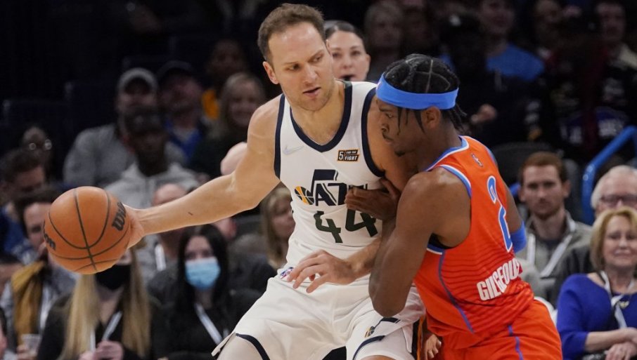 KOŠARKAŠI Jute pobedili su Oklahomu sa 116:103. Najbolji u pobedničkoj ekipi bio je Bojan Bogdanović sa 35 poena, od kojih je ubacio 11 "trojki", što je novi rekord franšize. Donovan Mičel postigao je 24 poena uz 10 asistencija, a Džordan Klarkson 20 poena.
