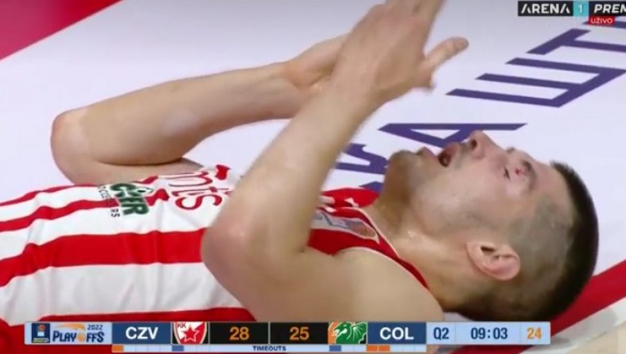 Zvezda i Cedevita igraju u beogradskom "Pioniru" meč plej-ofa ABA lige, a američki centar Zak August nesmotreno je udario u lice Luku Mitrovića i taj potez mogao je ozbiljno da povredi košarkaša Zvezde.