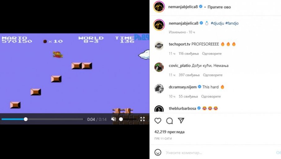Ostaćemo u gejming svetu, Bjelica je podelio na društvenim mrežama detalj iz video-igre "Super Mario", gde glavni junak prelazi pretposlednji nivo i odlazi u zamak gde ga čeka borba sa zmajem.