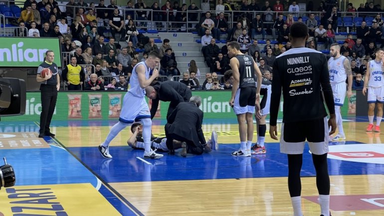 5. minut - Jeziva povreda sada Tristana Vukčevića! Talentovani momak je sjajno zakucao, ali je prilikom doskoka, po svemu sudeći doživeo težu povredu. Vukčević ne može da nastavi meč, napušta parket sa bolnom grimasom, u igri je umesto njega Matijas Lesor.