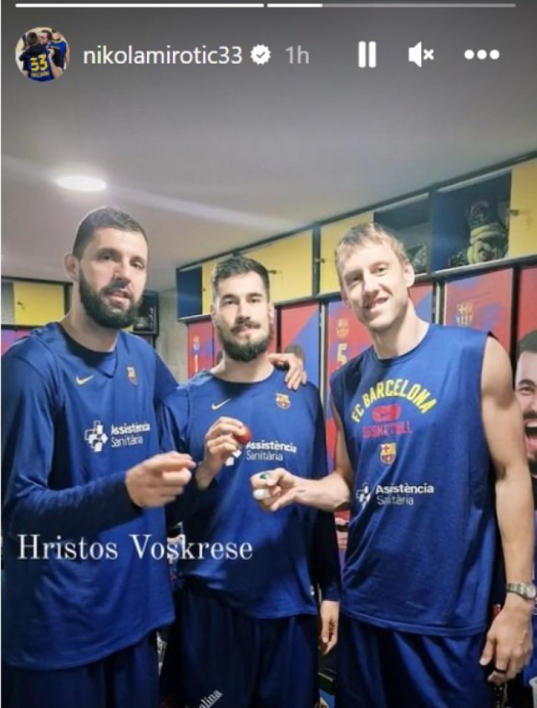Jedna veoma lepa fotografija stiže iz svlačionice Katalonaca. Naime, Nikola Mirotić doneo je jaja saigračima Nikoli Kaliniću i Janu Veselom.