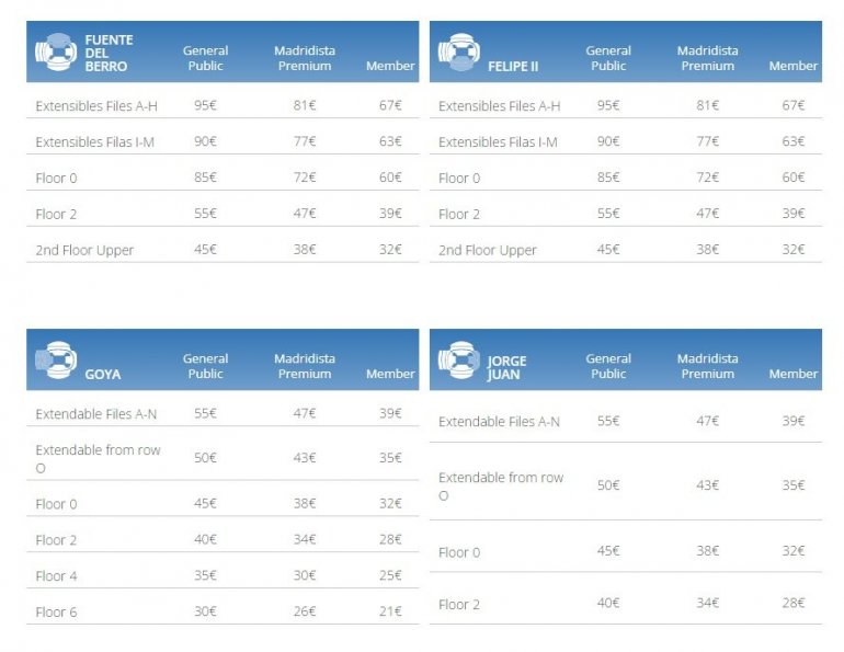 A najjeftinija karta u Madridu, za publiku koja nije ni član sportskog kolektiva Real Madrid, ni vlasnik sezonske karte, košta daleko manje, 30 evra.