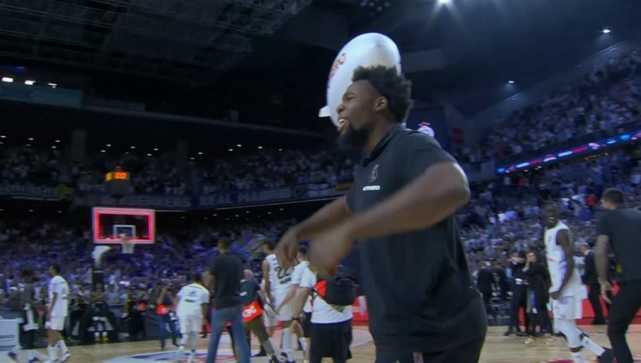 Iako je i te kako "nepoželjan" na igralištu na kome su beogradski crno-beli, on je odmah došao sa tribina i pokazao igračima i navijačima Partizana kažiprstima ka parketu, u stilu: EuroleagueTV