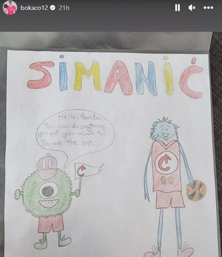 Košarkaš Saragose, Boriša Simanić, dobio je crtež od jednog dečaka iz Španije. Malom navijaču Saragose, očigledno je omiljen igrač nekadašnji košarkaš Crvene zvezde.