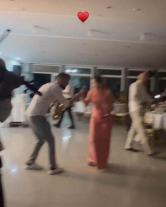 Na snimku koji se pojavio na Instagramu je nikad bolje raspoložena Jokićeva žena dok u elegantnoj haljini skače i peva, a onda i duva u saksofon jednog od muzičara.