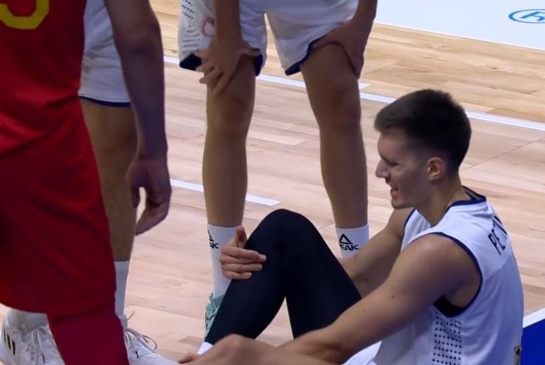NE! Ovo niko ne želi da vidi. Košarkaš Srbije Filip Petrušev povredio je skočni zglob desne noge na utakmici protiv Kine.
