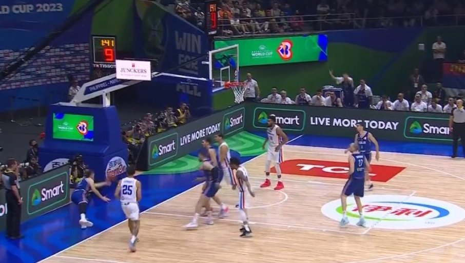 29' - Fantastičan detalj. Fantastičan. Trideset razlike, Aleksa Avramović tako "grize" na suparničkoj polovini terena da Dominkanci jedva prevode loptu preko centra, a koji sekund kasnije Avramović stiže u ugao, blokira dalekometni šut rivala i odmah se baca "u publiku" da ne dozvoli lopti da izađe. Sjajno...