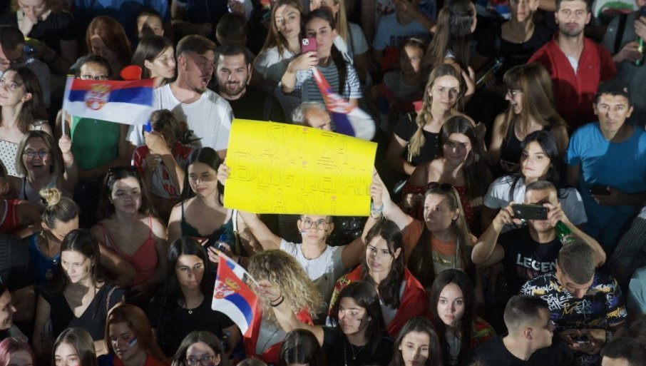 20.29 - Strahinja Stojačić, najbolji basketaš sveta na FIBA rang listi, pokušao je da se obrati okupljenima, ali njegove reči nikjo nije mogao da čuje od zaglušujućeg skandiranja "MVP!" "MVP!". Nestvarne scene ispred Skupštine grada. Bilo je raznih proslava ranije, ali ovako bučne publike... teško.