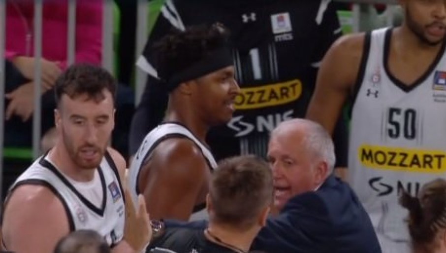 ... a sukob su sprečile klupske kolege, dok je i Željko Obradović morao da malo smiri strasti koje se, srećom, nisu dodatno razbuktale.