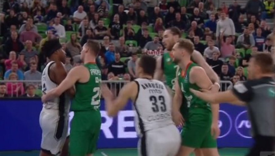 Sukob Zak Ledej - Jaka Blažič na utakmici Cedevita Olimpija - Partizan / Screenshot / TV Arena sport