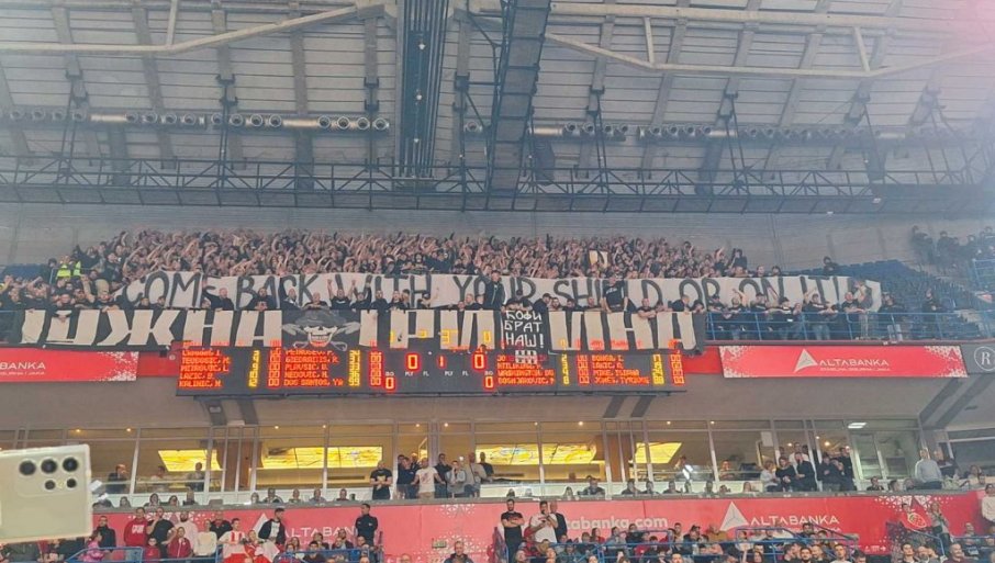 PRVI TRANSPARENT NA ENGLESKOM U ISTORIJI DERBIJA: Ovo su "grobari" poručili na meču Zvezda - Partizan u košarci (FOTO)
