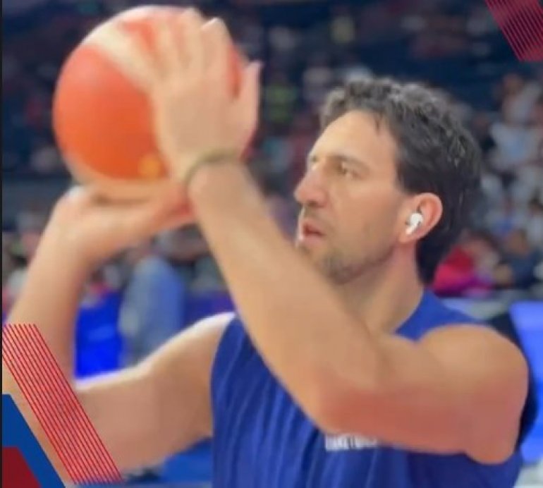 18.57 - Za to vreme, naši se već zagrevanju, a Nikola Jokić je prvi izašao na parket Beogradske arene. I posle se neko pita "Pa, kako je on najbolji na svetu?". Pa, eto, tako što iako je najbolji - prvi izađe da vežba.