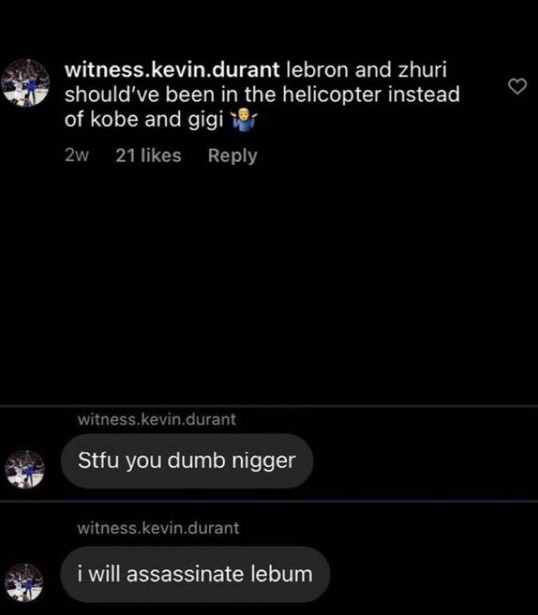 Da je reč o boelsnom čoveku potvrđuje i jedna njegova ranija objava u kojoj piše kako bi bilo bolje da su u helikopteru u kome su poginuli Kobi Brajant i njegova kćerka Điđi bili Lebron i njegova ćerka Zeri. U nastavku tog trida opet je pominjao ubistvo Džejmsa: