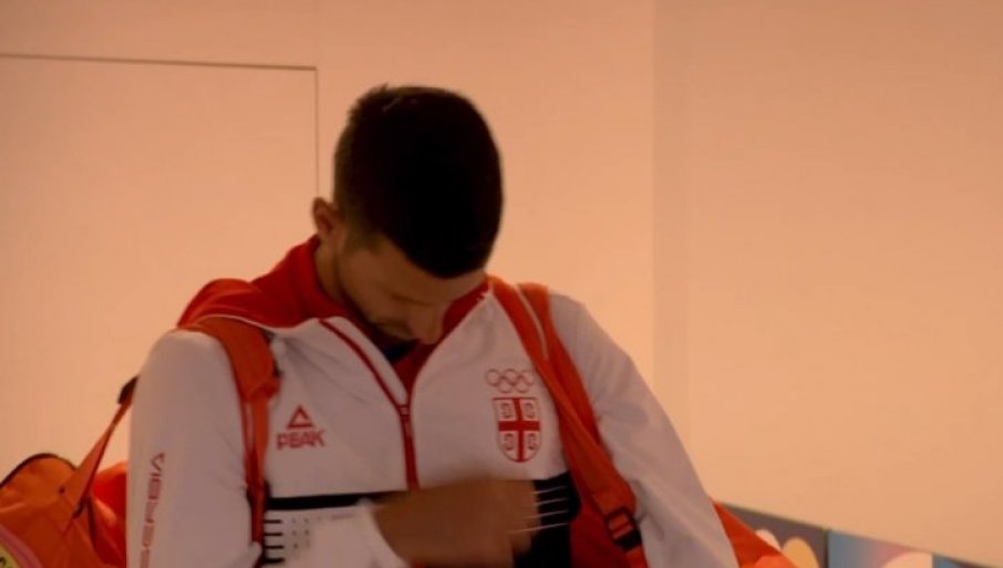 Novak Đoković se krsti pred početak svoje olimpijske priče u Parizu / Screenshot: RTS