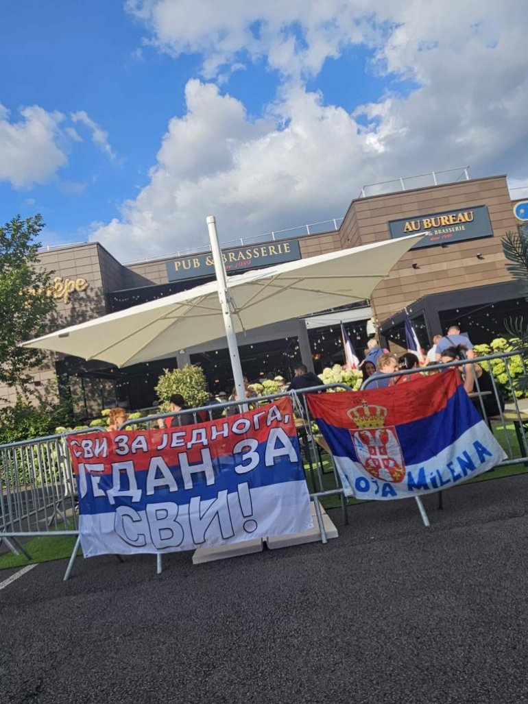 Srpske trobojke i "Svi za jednog, jedan za svi" FOTO: Đ. Samoilović