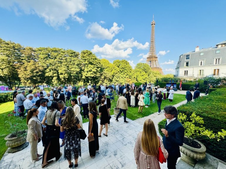 Ambasadorka Srbije u Parizu Ana Hrustanović priredila je sinoć prijem u svojoj rezidenciji kod Ajfelove kule za srpske privrednike i članove olimpijske delegacije.