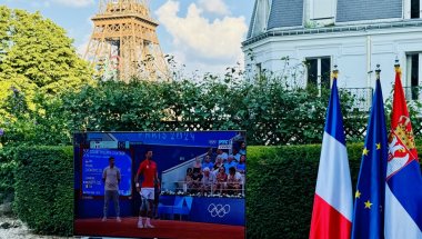 Istovremeno, okupljeni su imali priliku da preko velikog ekrana prisustvuju trijumfu Novaka Đokovića u polufinalu olimpijskog turnira, dok se u pozadini uzdizala Ajfelova kula.