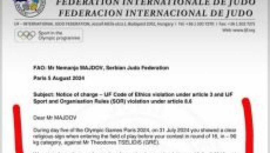 Podsetimo, tokom trajanja Igara u Parizu, Majdov je istakao da mu je stigao dopis Svetske džudo federacije u kome mu se zamera što je, kada je izlazio na olimpijski meč protiv Grka Teodoresa Celidisa, pokazao "verski znak", odnosno - prekrstio se.
