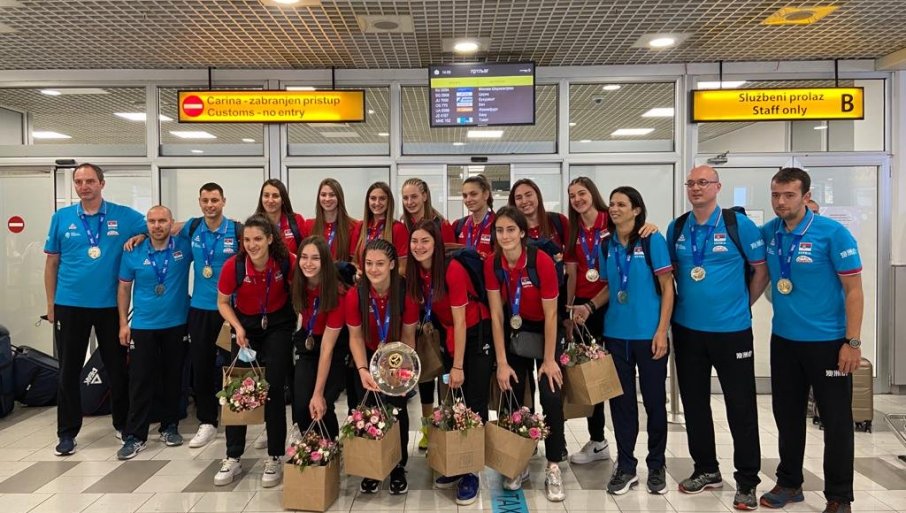 PONOSNE i srećne bile su danas odbojkašice Srbije na aerodromu "Nikola Tesla" po povratku iz Holandije, gde su sinoć osvojile srebrnu medalju na SP do 20 godina.