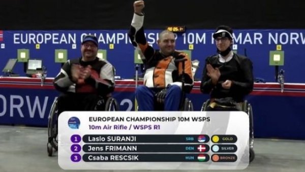 SRPSKI reprezentativac Laslo Šuranji osvojio je titulu šampiona Evrope u parastreljaštvu na prvenstvu koje se održava u norveškom Hamaru.