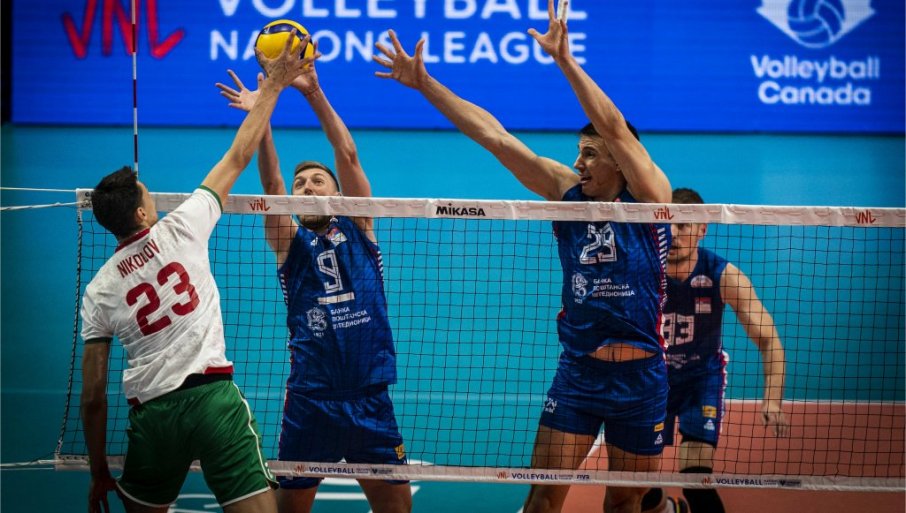 AGRESIVNIM servisom i napadom odbojkaši su "oduvali" Bugare za startnu pobedu u Ligi nacija. Naša podmlađena selekcija je posle bledog izdanja u prvom setu od drugog čina zaigrala odvažnije i svom kormilaru Igoru Kolakoviću omogućila da se raduje na početku svog novog mandata na klupi Srbije - 3:1 (19:25, 25:19, 25:22, 25:20).