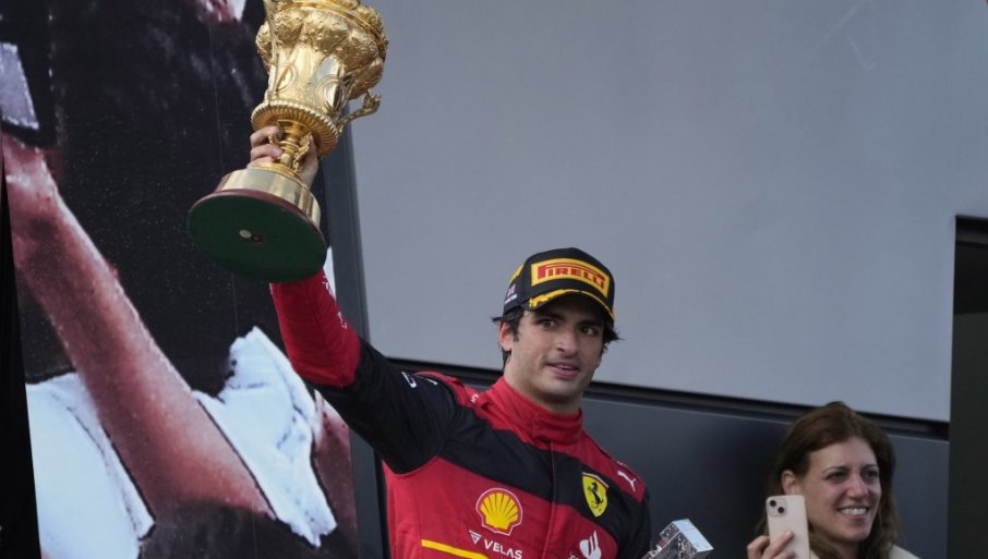 Karlos Sainc, posle prve F1 pobede u karijeri, na Silverstounu 2022 / FOTO: Tanjug/AP