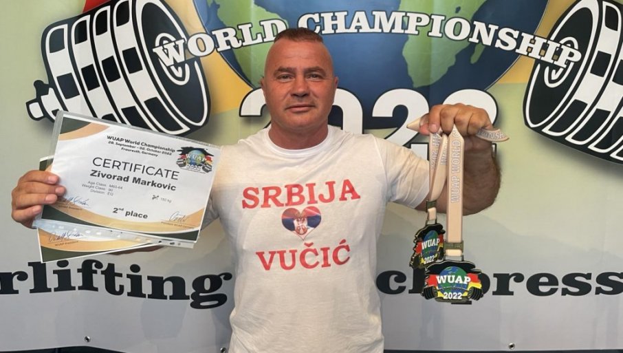 - Prošle godine sam bio jednom, a ove dva puta prvak sveta u dve federacije, imam čak pet zlatnih medalja sa evropskih šampionata... Za mene je najveća čast to što se borim i pobeđujem za Srbiju, što se u ova teška vremena za našu zemlju sve češće čuje naša himna "Bože, pravde" - ponosan je Marković.