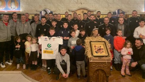 SVEŠTENICI Srpske pravoslavne crkve Svetog Kirila i Metodija u Malmeu, Aleksandar Samardžić i Nemanja Mirović, zajedno sa narodom, organizovali su za Božić večeru za rukometaše Srbije. Pre večeri igrači i stručni štab su prisustvovali liturgiji, a prilikom lomljenja česnice zlatnik je pronašao Petar Đorđić. Kapiten Nemanja Ilić i najmlađi Stefan Dodić, uručili su sveštenicima dresove reprezentacije u znak zahvalnosti RSS.