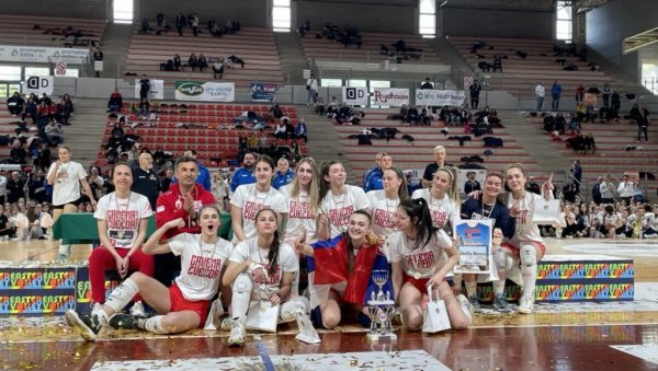 DVA zlata i jedno srebro osvojile su mlade odbojkašice Crvene zvezde na Uskršnjem međunarodnom turniru u Ankoni. Juniorke su u finalu savladale domaću ekipu Mondial sa 2:0, kadetkinje su bile bolje od Trenta (2:1), dok su pionirke u borbi za pehar izgubile od Zagreba - 1:2.