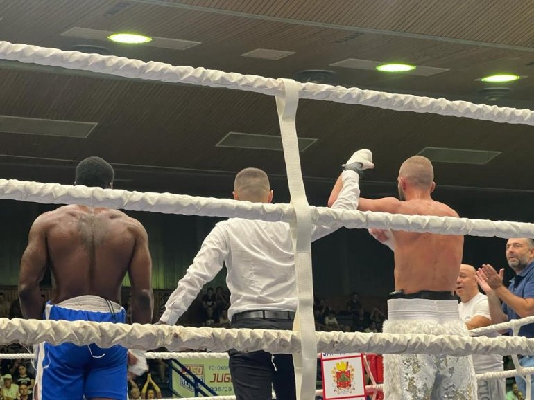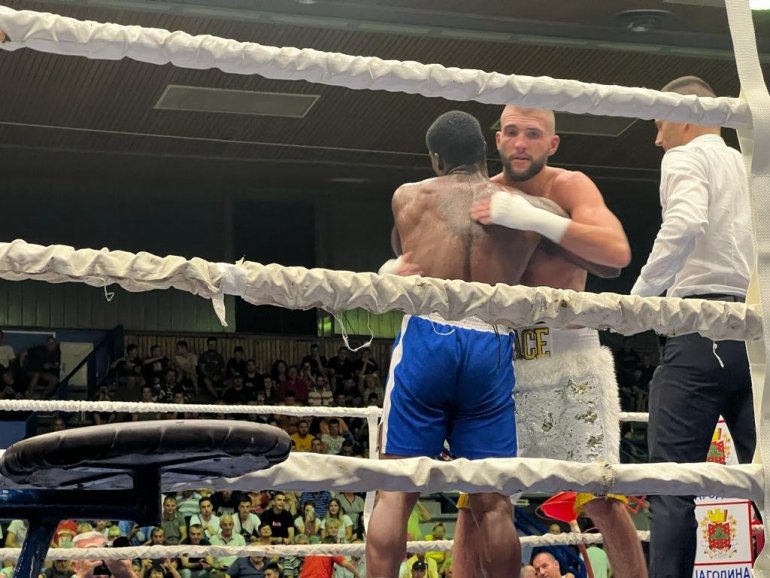 TRIJUMF: Veljko Ražnatović pred punom halom ostvario je pobedu nokautom u četvrtoj rundi (FOTO)