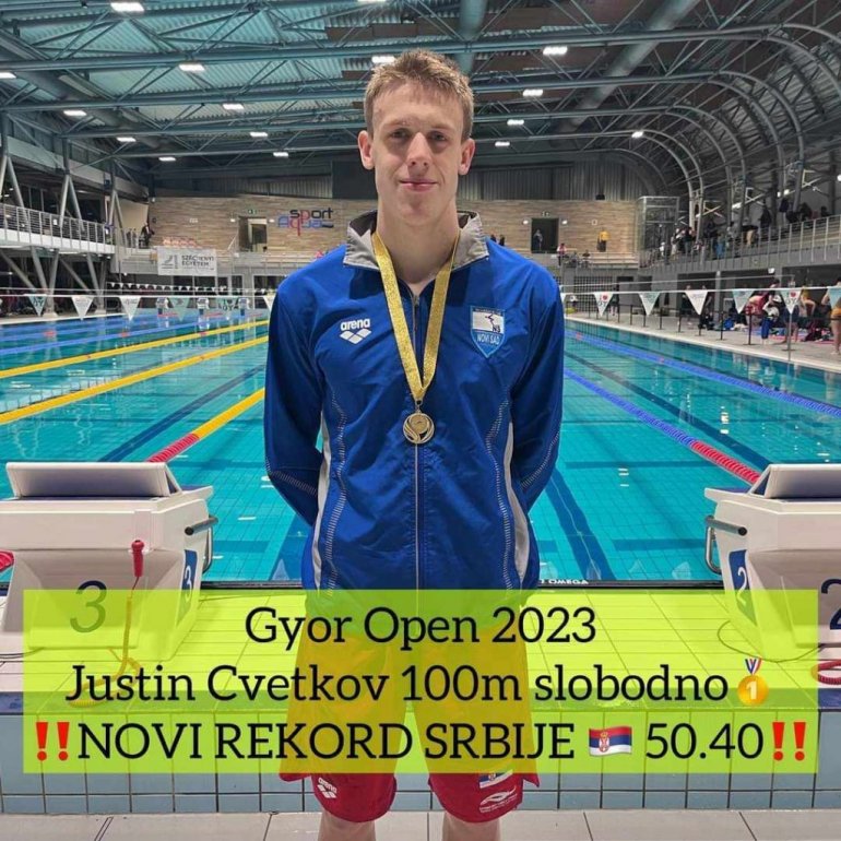 MLADI plivački reprezentativac Srbije, Zrenjaninac Justin Cvetkov, na internacionalnom takmičenju u mađarskom Đeru, osvojio je dve zlatne medalje, u trkama na 50 i 100 metara kraul.