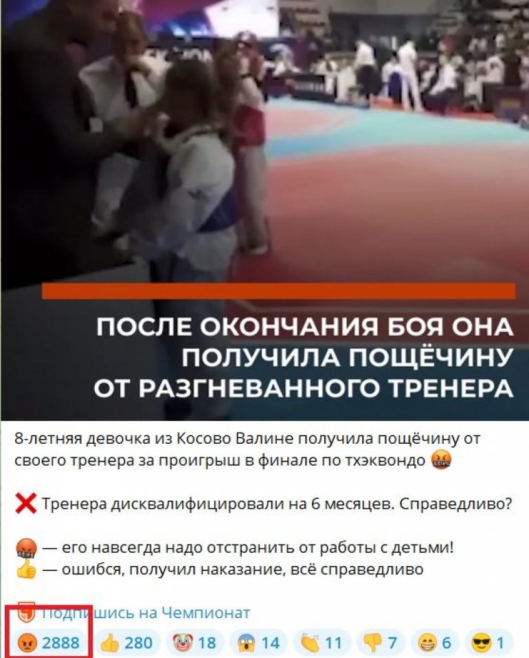 Na nekoliko velikih sportskih portala u Ruskoj Federaciji je emitovan pomenuti snimak nasilja, a na jednom od najvećih, "Šampionat", čitaoci su upitani sledeće: