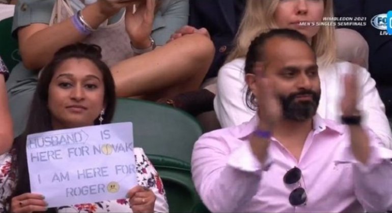 - Muž je ovde zbog Novaka, ja zbog Rodžera - pisalo je na transparentu koji je držala jedna gospođa.