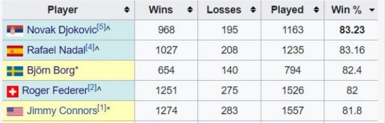 Amerikanac ima 306 pobeda više i za to će Đokoviću biti potrebno mnogo, ali ako bude nastavio ovim tempom ni to nije nedostižno...