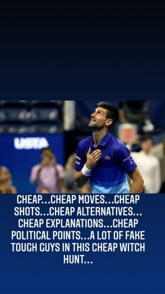 - Jeftino... jeftini potezi... jeftini pokušaji... jeftina objašnjenja... jeftino skupljanje političkih poena... Mnogo lažnih frajera u ovom jeftinom lovu na veštice - napisao je Tipsarević na svom Instagram storiju.