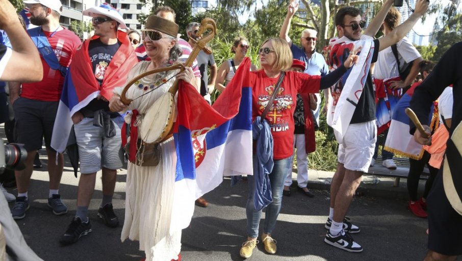 Ipak, non-stop se nešto dešava ispred hotela, pošto su se mnogobrojni srpski navijači okupili kako bi pružili jaku podršku Novaku Đokoviću.