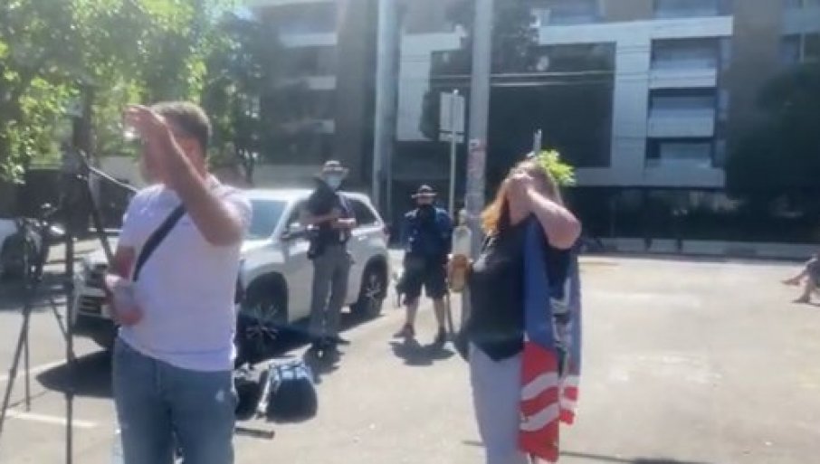 AUSTRALIJSKI PAR ODUŠEVIO SRBIJU: Ogrnuti zastavom Beograda uz rakiju nazdravili - "Za Noleta"( VIDEO)