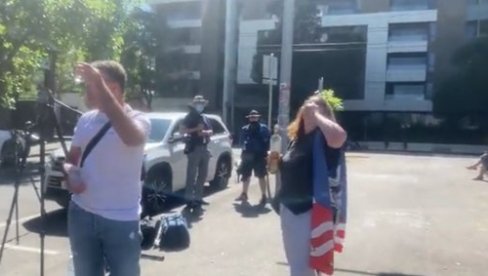 Među brojnim Srbima su i Australijanci Bili i Zigi, inače bračni par, došli su ispred suda da daju podršku Novaku Đokoviću uz poštovanje srpskih običaja.