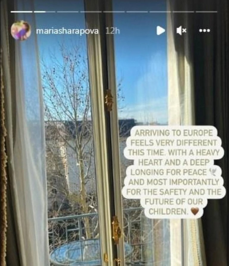 - Ovaj dolazak u Evropu mi je potpuno drugačiji od prethodnih. Teška srca, i uz duboku čežnju za mirom. Najvažnija je sigurnost i budućnost naše dece", napisala je Marija Šarapova, i tako neke koji su je kritikovali prilično zbunila, a one koji su sve vreme bili uz nju, obradovalo što je istakla da je budućnost dece najvažnija.