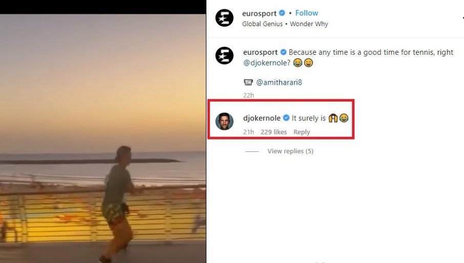Naime, usred večernje šetnje obalom, građani i gosti Tel Aviva mogli su da na šetalištu vide i kako Novak Đoković trči, zamišljajući da igra tenis, te posle svaka-dva tri koraka izvodi jedan "zamišljeni forhend".