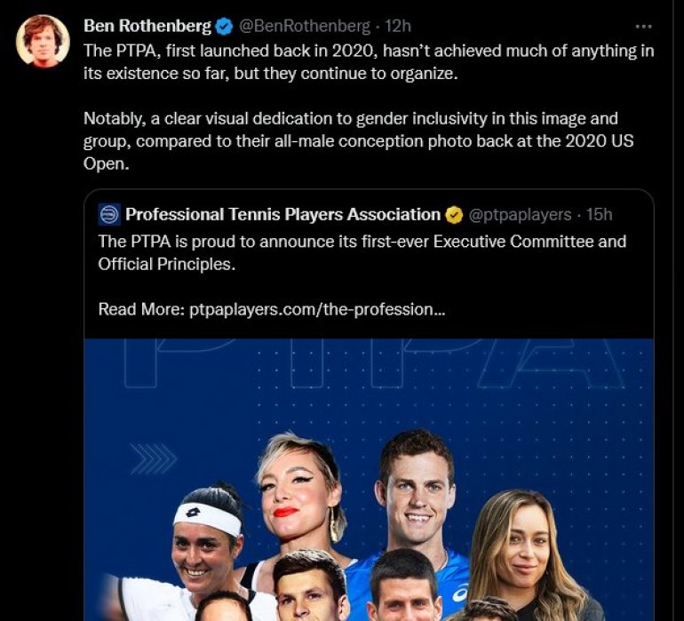 Ipak, Ben Rotenberg pronašao je nešto što mu se ne dopada. On je u prvi plan izbacio da PTPA nije učinila ništa od osnivanja, osim da je danas višeteniserki zastupljeno na promotivnom posteru.