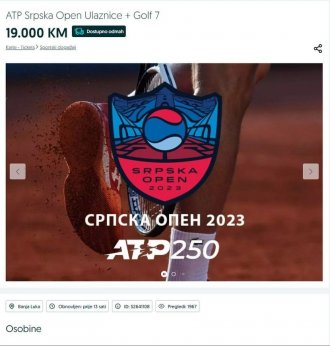 - Želite da gledate najboljeg tenisera u istoriji, a da na turnir dođete golfom 7 koji ima panorama krov? Na prodaju dve karte za treći dan turnira Srpska open. Uz kupovinu karata na poklon dobijate vozilo folksvagen golf 7, 1.6, 77kw, 2013. godina. Auto uvezen iz Nemačke pre tri godine, redovno održavan u ovlašćenom servisu, odrađen veliki i mali servis. Poseduje servisnu knjigu i dva ključa. Originalna kilometraža što se može proveriti u ovlašćenom servisu gde je i servisiran. Auto bez ikakvih dodatnih ulaganja. Poseduje i panorama krov, zeder, zimske gume kupljene nove početkom prošle sezone (Michelin) i letnje gume na alu felnama. Tek registrovan.