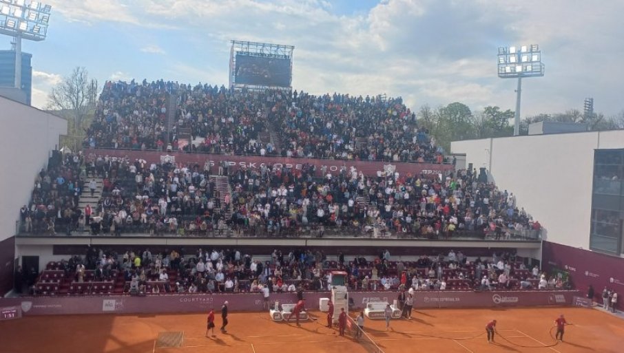 15.56 - Tribine centralnog terena u Banjaluci se pune i Novak Đoković i Dušan Lajović će igrati meč u sjajnom ambijentu. Tu je dosta ljudi sa srpskim zastavama.