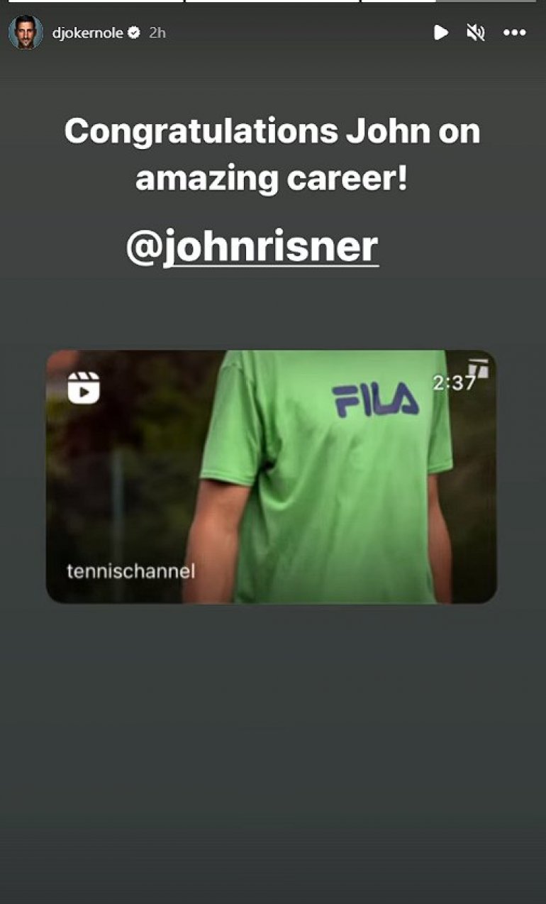 - Čestitke Džon na neverovatnoj karijeri - napisao je Đoković na društvenoj mreži.