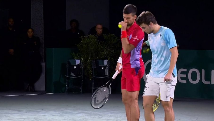 Novak Đoković objašnjava Kecmanoviću kako nije uspeo da napravi brejk za 3:0 u 1. kolu pariskog mastersa / Screenshot / TennisTV