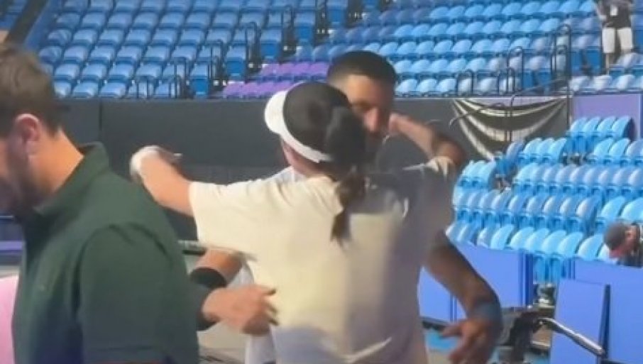 Olga Danilović grli Novaka Đokovića po njegovom dolasku na treningu u Pertu / Foto: Instagram/djokernole